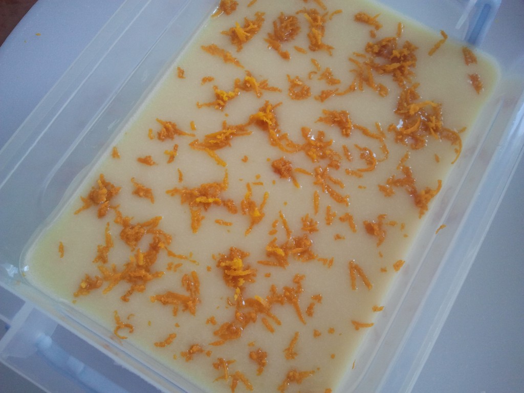 Dupa cum ati putut vedea in fotografiile realizate in timpul productiei de sapun natural, am pregatit o reteta interesanta, cremoasa, iar sapunul rezultat a fost decorat cu coaja de portocala. Uleiurile esentiale alese au fost anason si portocale. Astfel, am obtinut un sapun natural cu miros proaspat, revigorant, dulce.